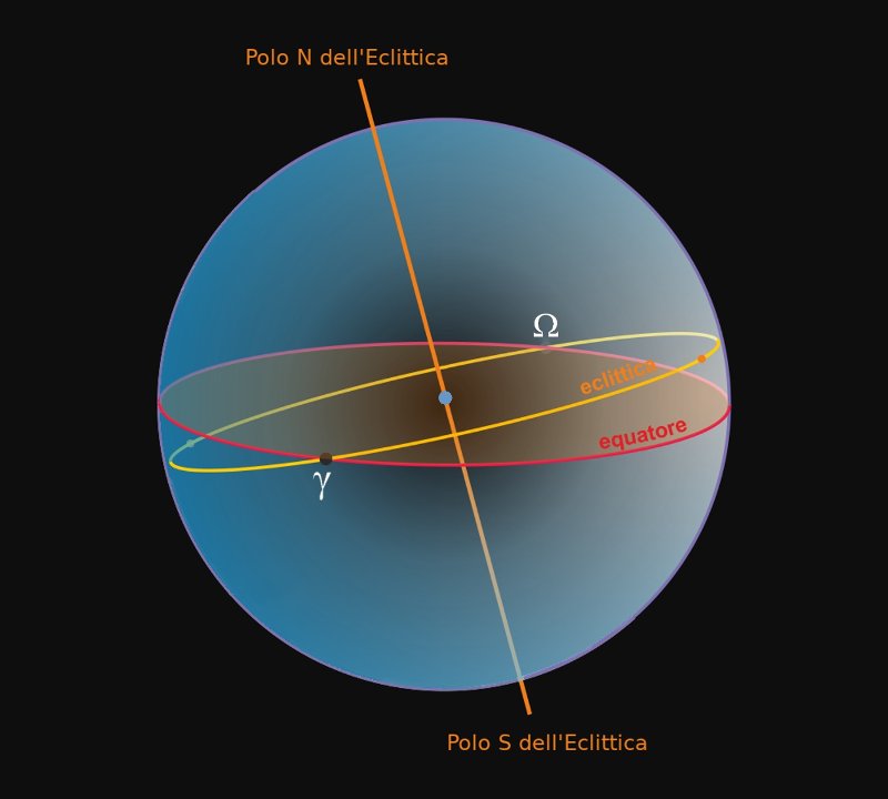 La crocetta rossa nella cartina del Dracp in alto marca la posizione del polo nord dell'eclittica, il punto della sfera celeste situato al centro della circonferenza tracciata dall'asse terrestre in 26.000 anni.
