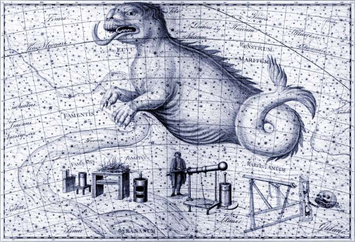 Immagine dell'Uranographia di J. E. Bode del 1801 che mostra alcune delle costellazioni introdotte da LaCaille