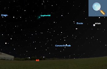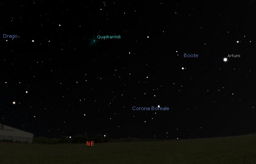 L'antica costellazione del Quadrante Quello delle Quadrantidi è il primo sciame meteorico dell'anno, uno dei più intensi dell'anno, ma è anche uno dei meno osservati in quanto il suo radiante, molto settentrionale, ne impedisce la visione dall'emisfero australe e inoltre le nottate gelide di inizio gennaio non invitano certo a passare all'addiaccio alcune ore osservative. Ma il sacrificio può essere ripagato dalla visione di circa 150-200 meteore l'ora. Le meteore sono generalmente bluastre e attraversano l'atmosfera terrestre ad una velocità piuttosto moderata, stimata attorno ai 40 km al secondo, il che facilita la formazione di bolidi. La magnitudine media delle meteore è di circa 2.8.